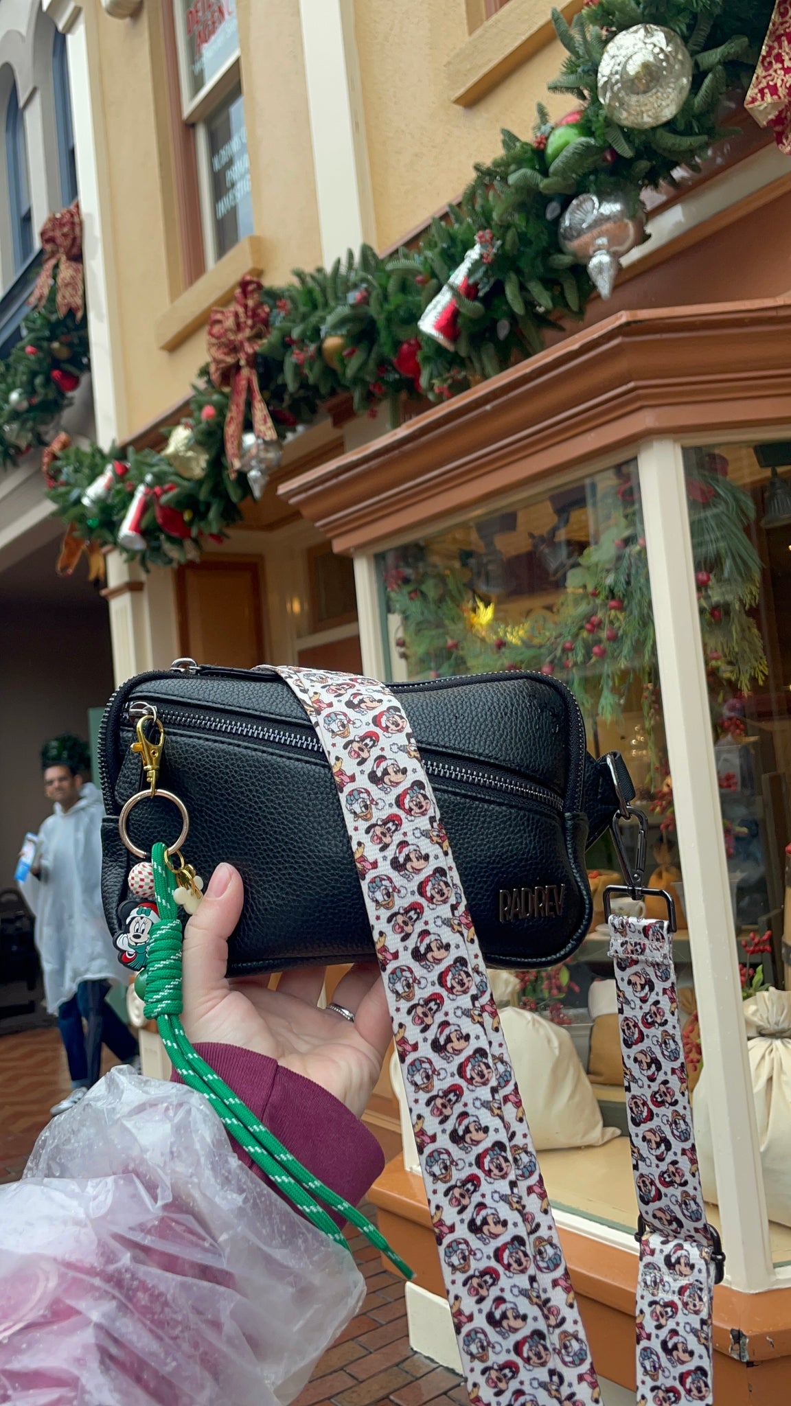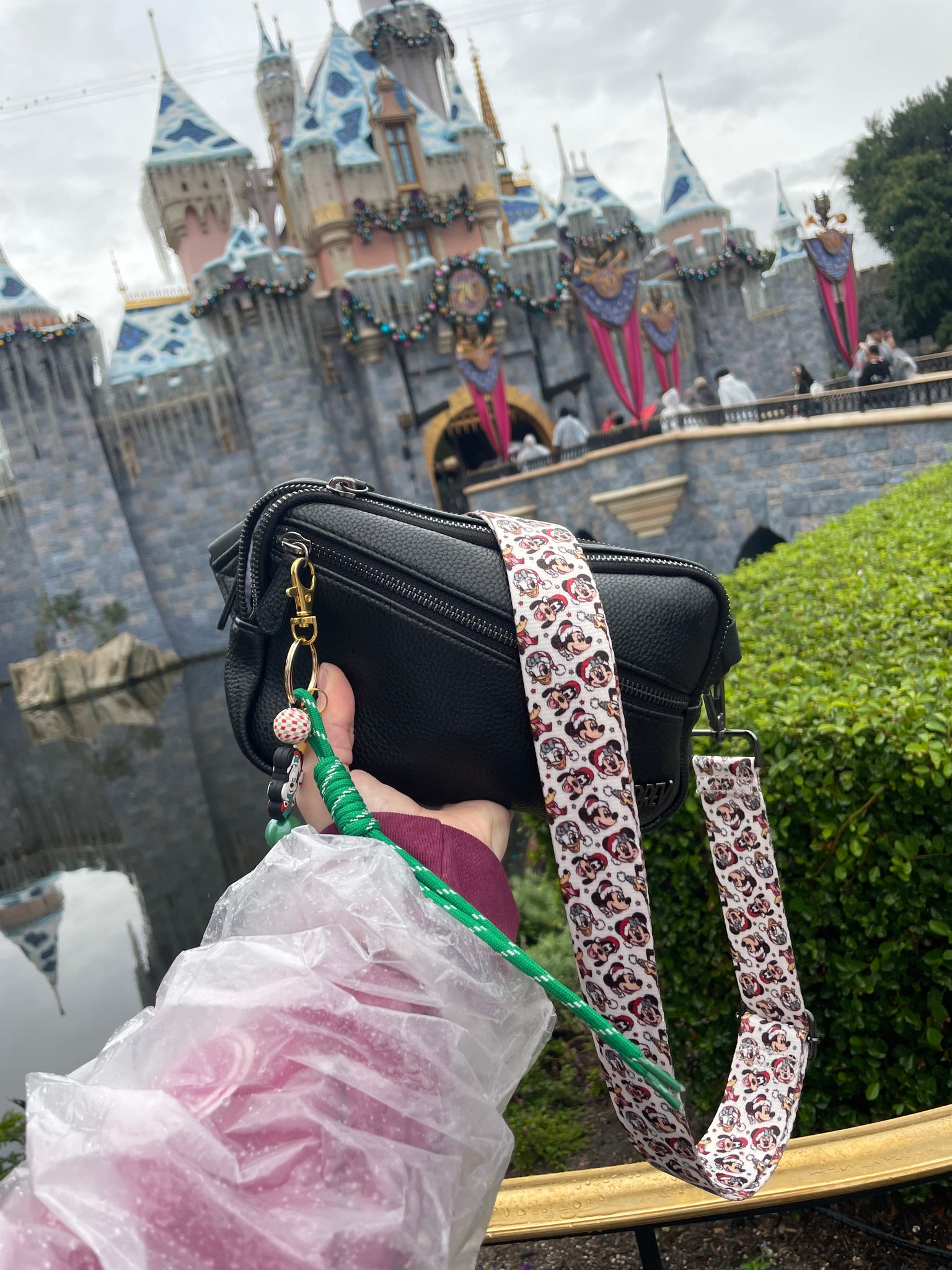 The perfect magical mouse Christmas bag strap. This strap is cream with everyone’s favorite friends. It is 1.5 inches wide and adjusts to about 60 inches at longest point.
