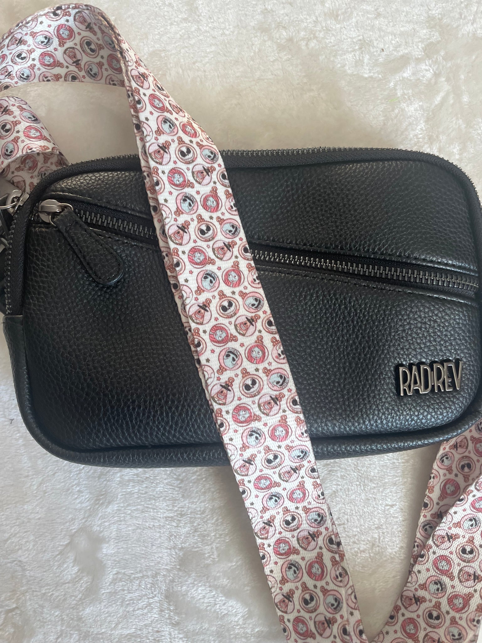 1.5 inches wide and adjusts to about 60 inches at longest point.