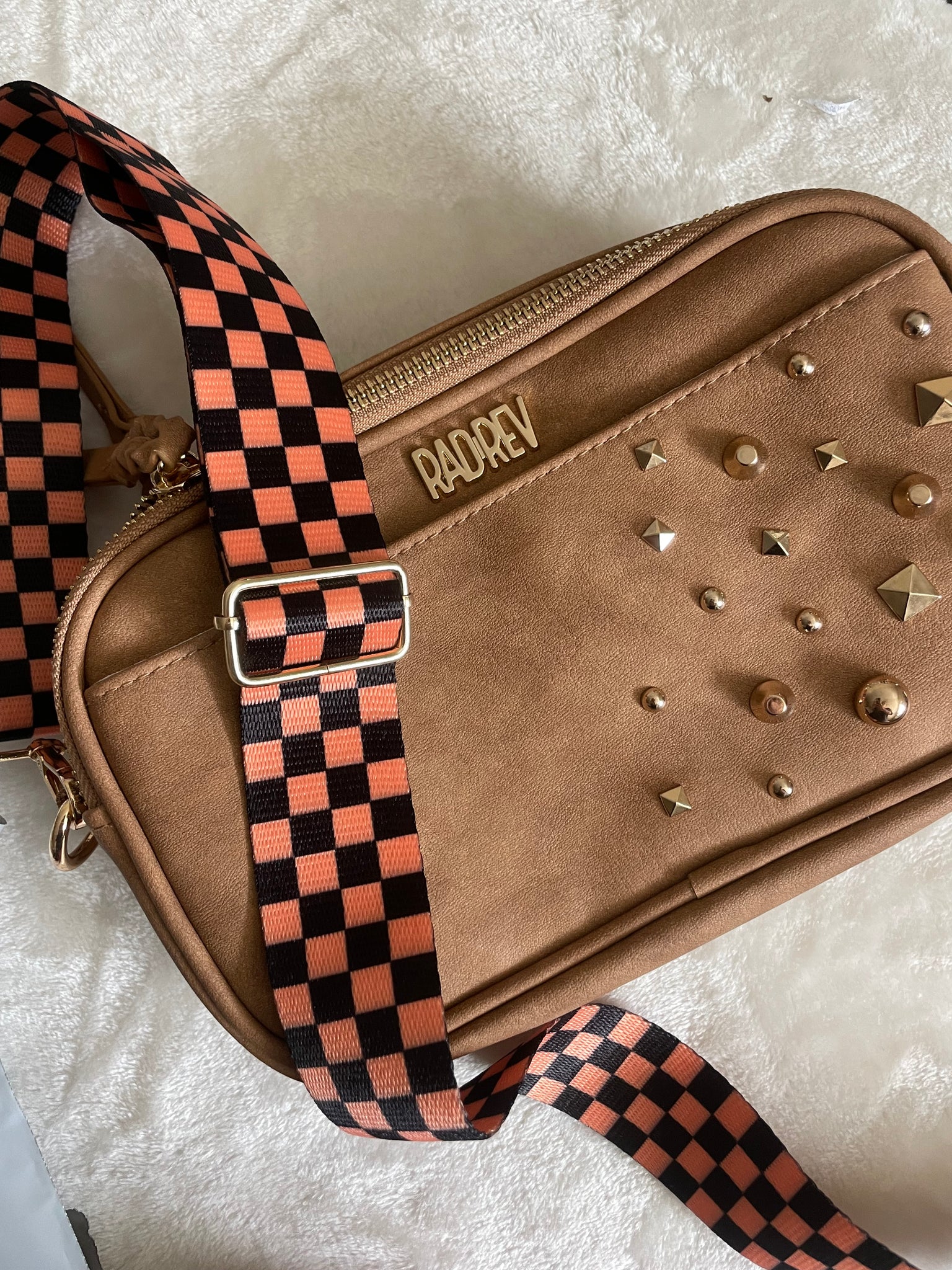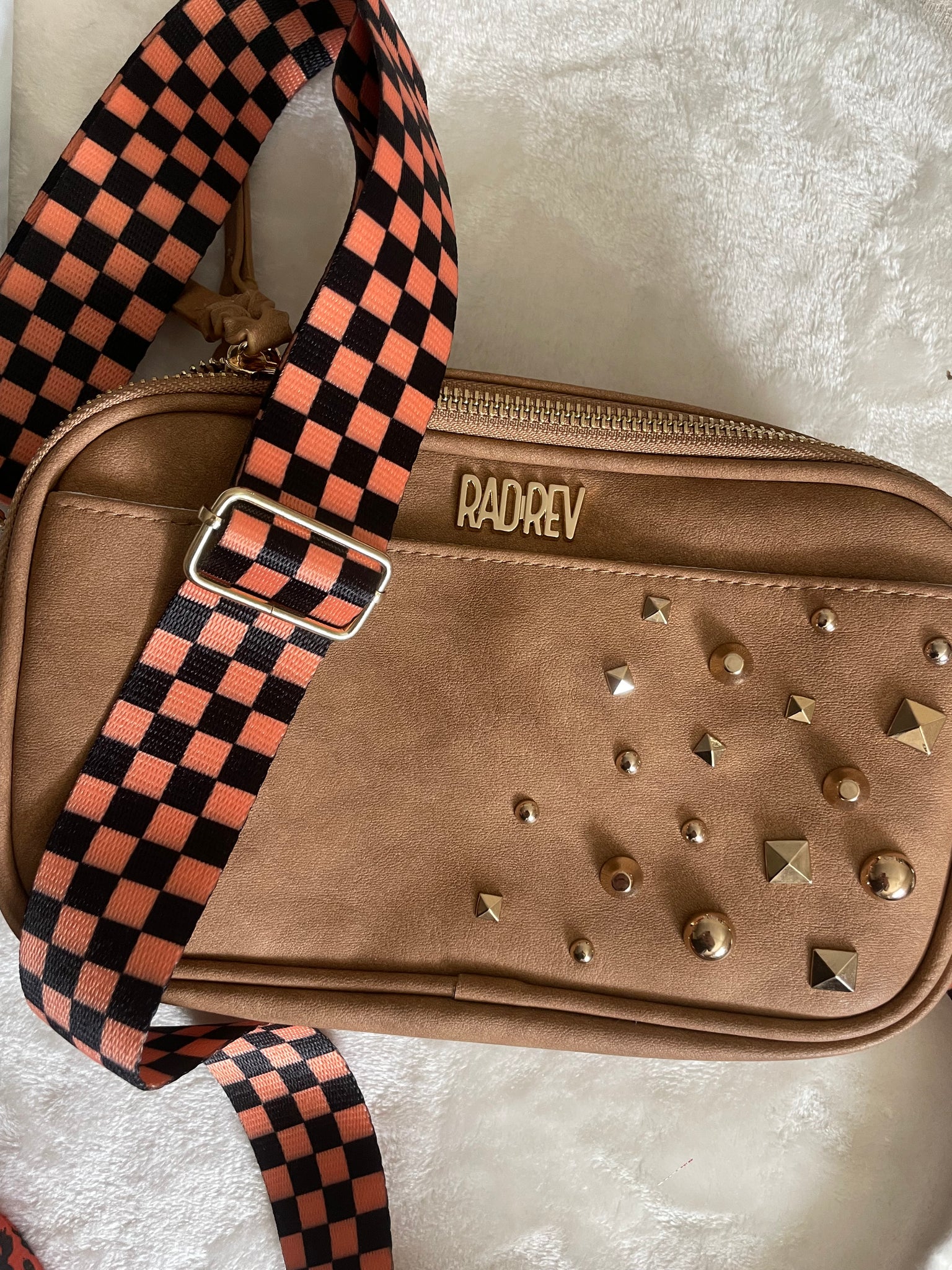 orange and black checker strap