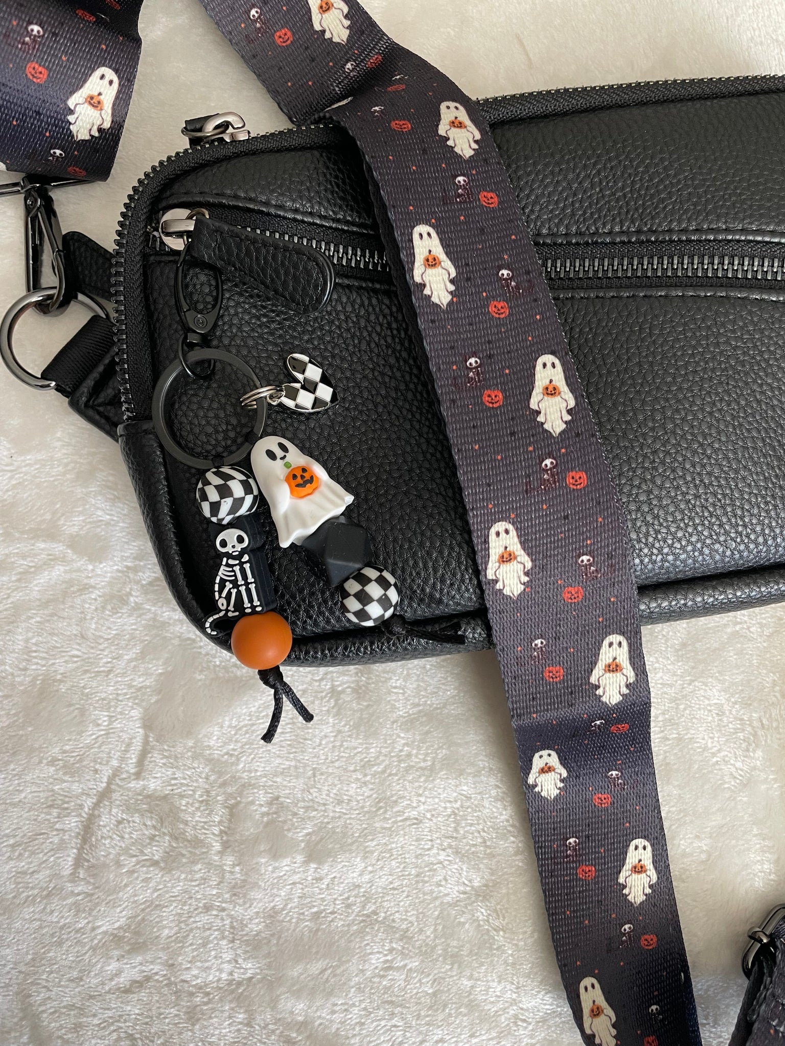 This keychain looks so cute with our skeleton cat bag strap. The skeleton cat is a double sided bead, the other side is a normal cat