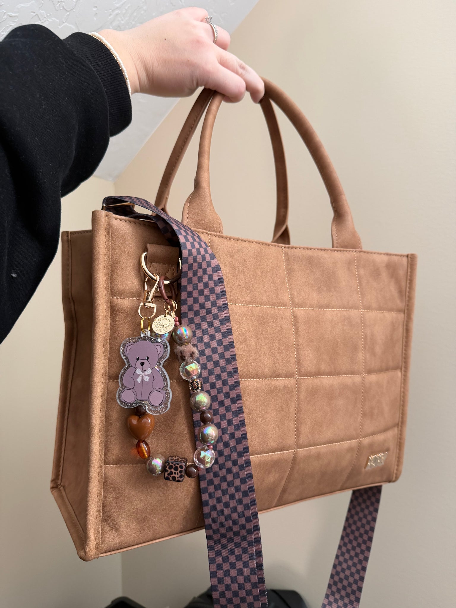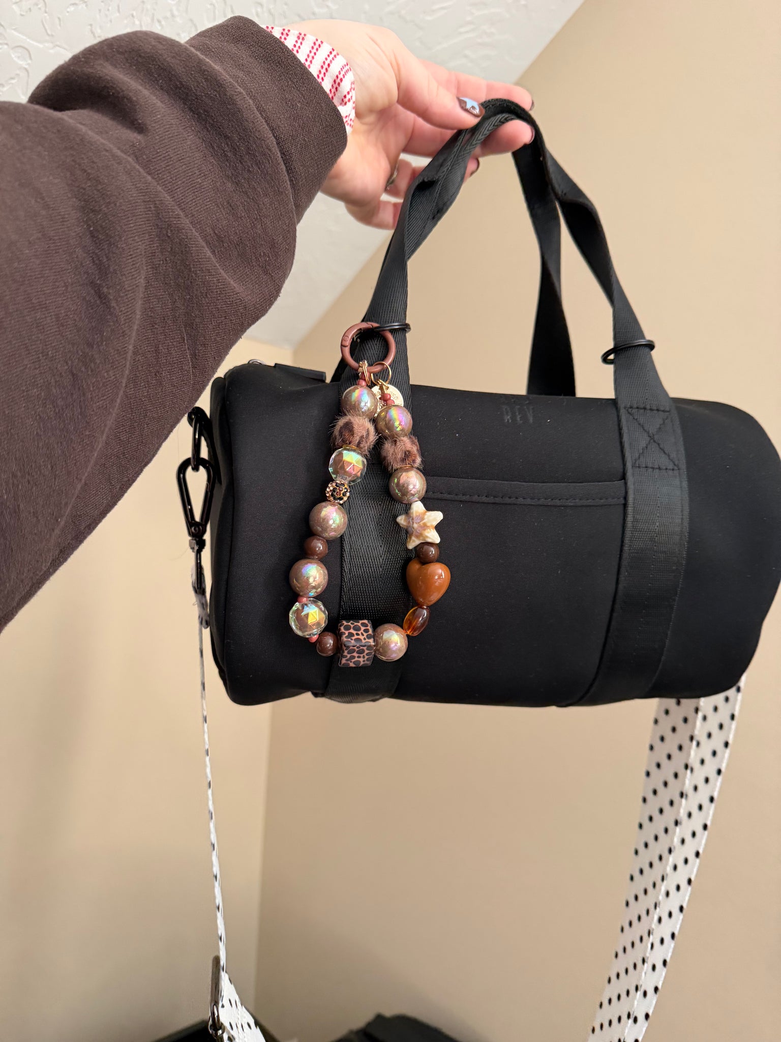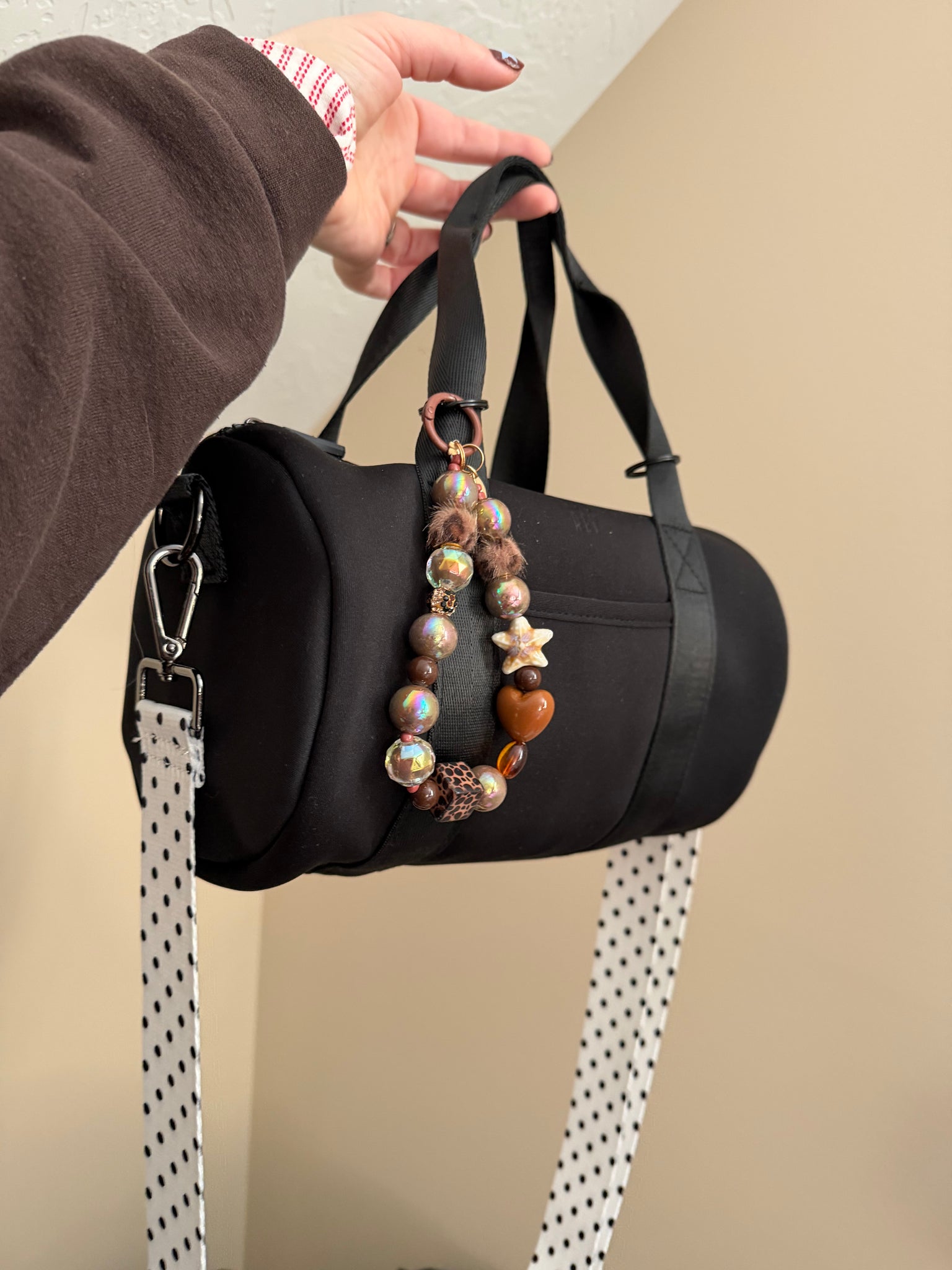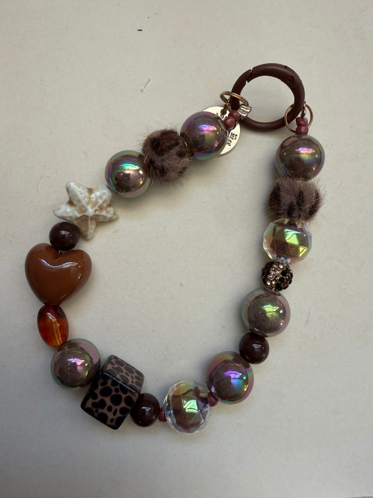And all beaded circle keychain. This is made with a brown clasp. The circle keychain is such a fun way to customize your bag!